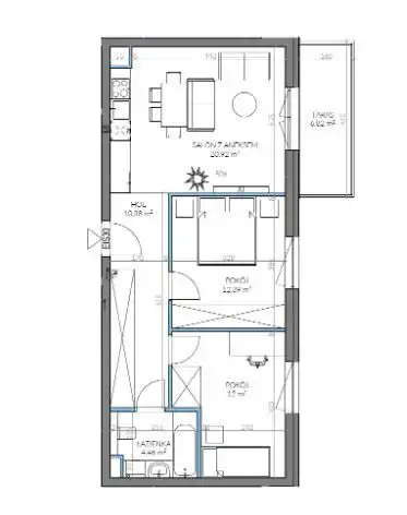 - Charakterystyka mieszkania 60.2 m2, 3 pokoje