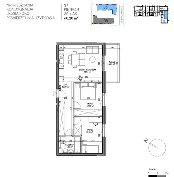 - Charakterystyka mieszkania 60.2 m2, 3 pokoje