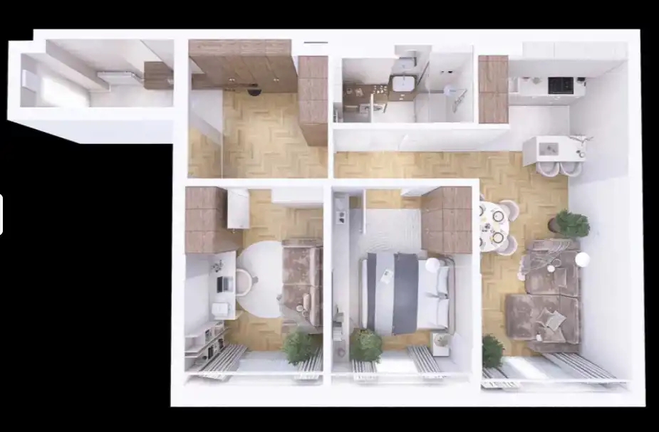 Dodatkowym atutem jest ogrodzony teren z parkingiem wyłącznie dla mieszkańców, zamykanym na pilota – komfort i bezpieczeństwo każdego dnia.