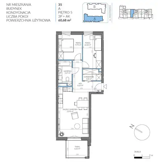 - Charakterystyka mieszkania 60.64 m2, 3 pokoje