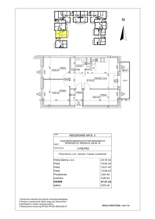 - Charakterystyka mieszkania 61.47 m2, 4 pokoje