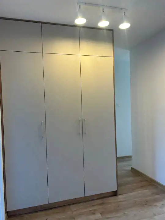 W przedpokoju duża i funkcjonalna szafa odzieżowa, wszystko wykonane na indywidualne zamówienie.