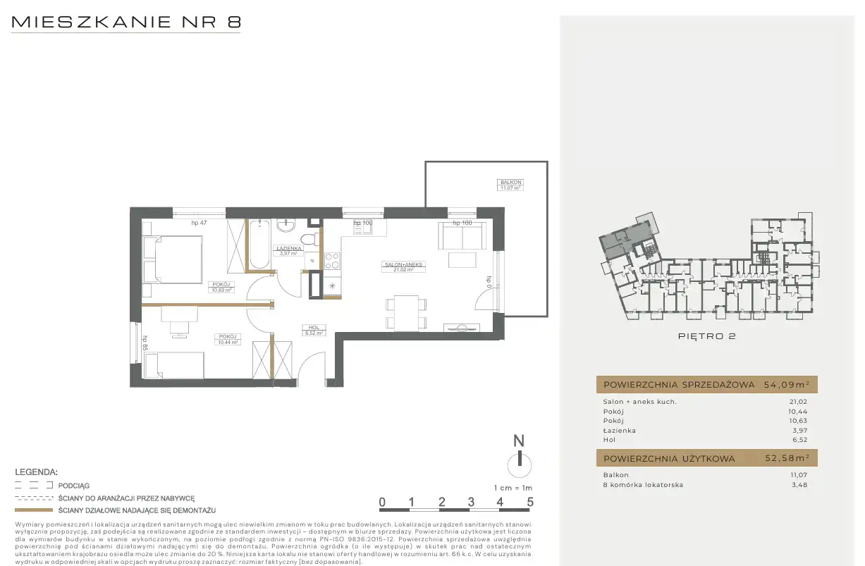- Charakterystyka mieszkania 54.09 m2, 3 pokoje