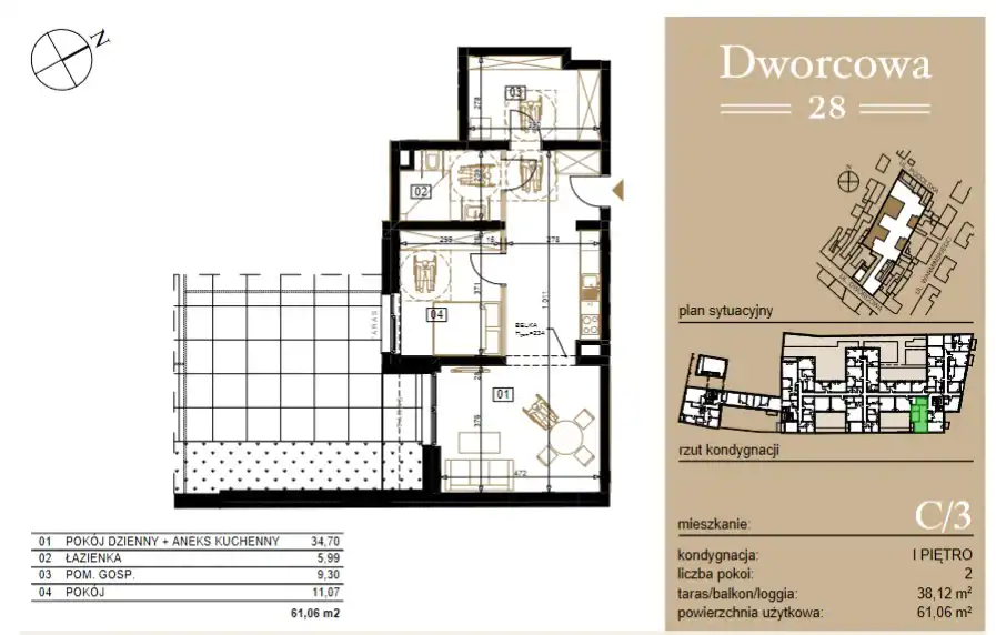 - Charakterystyka mieszkania 61.06 m2, 2 pokoje