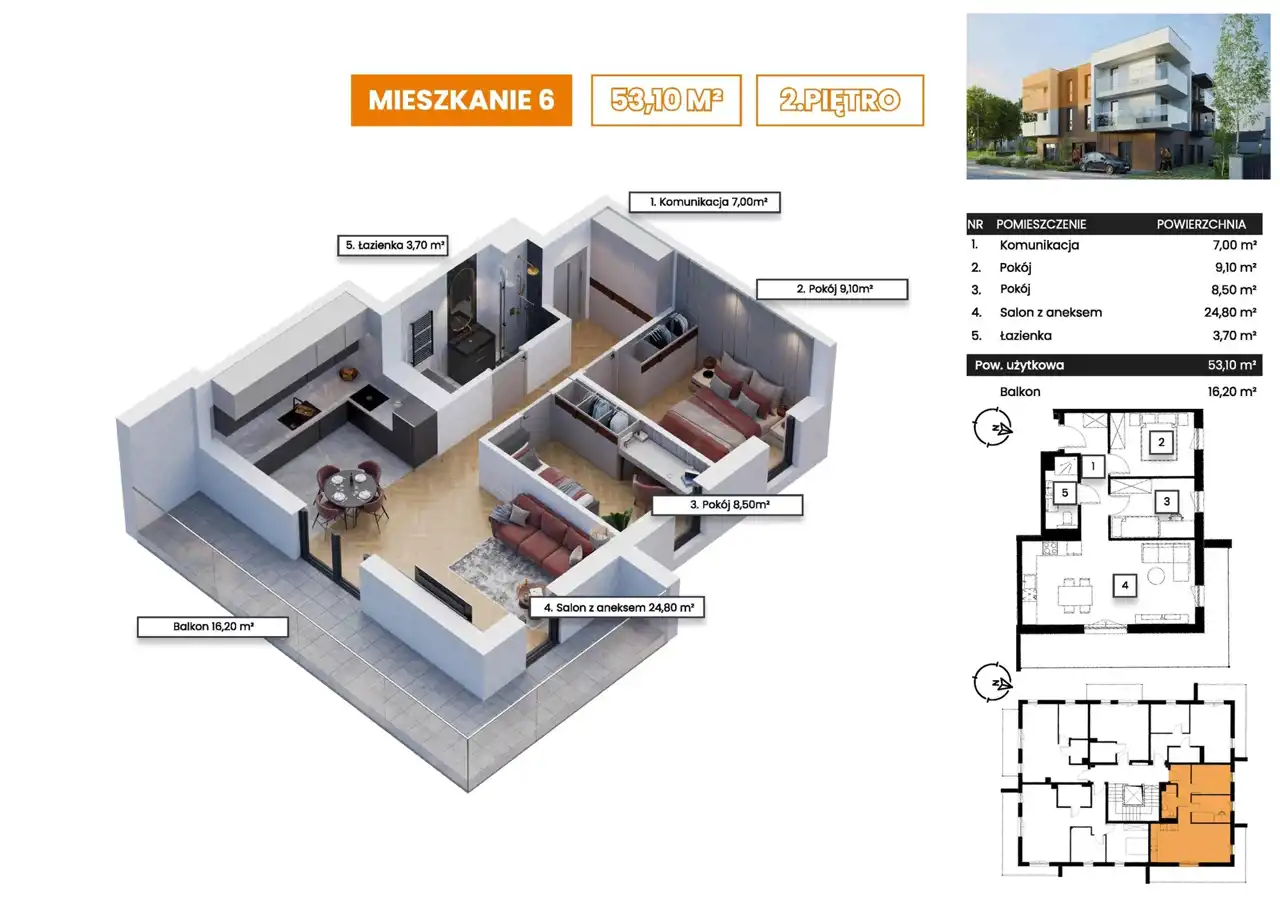 - Charakterystyka mieszkania 53.13 m2, 3 pokoje