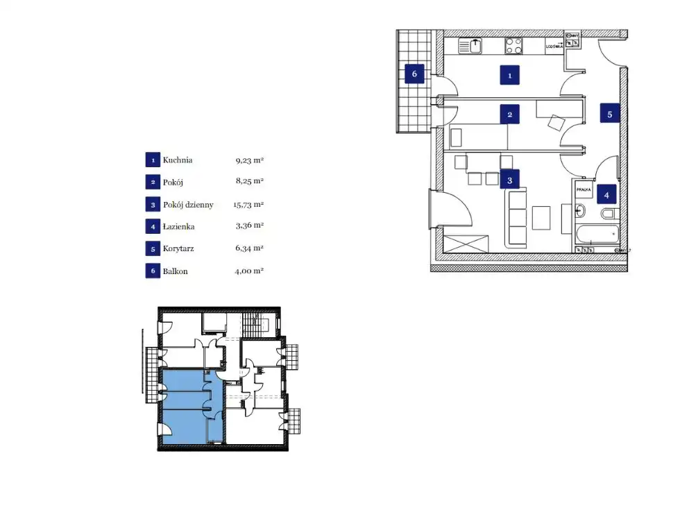 - Charakterystyka mieszkania 42.92 m2, 2 pokoje