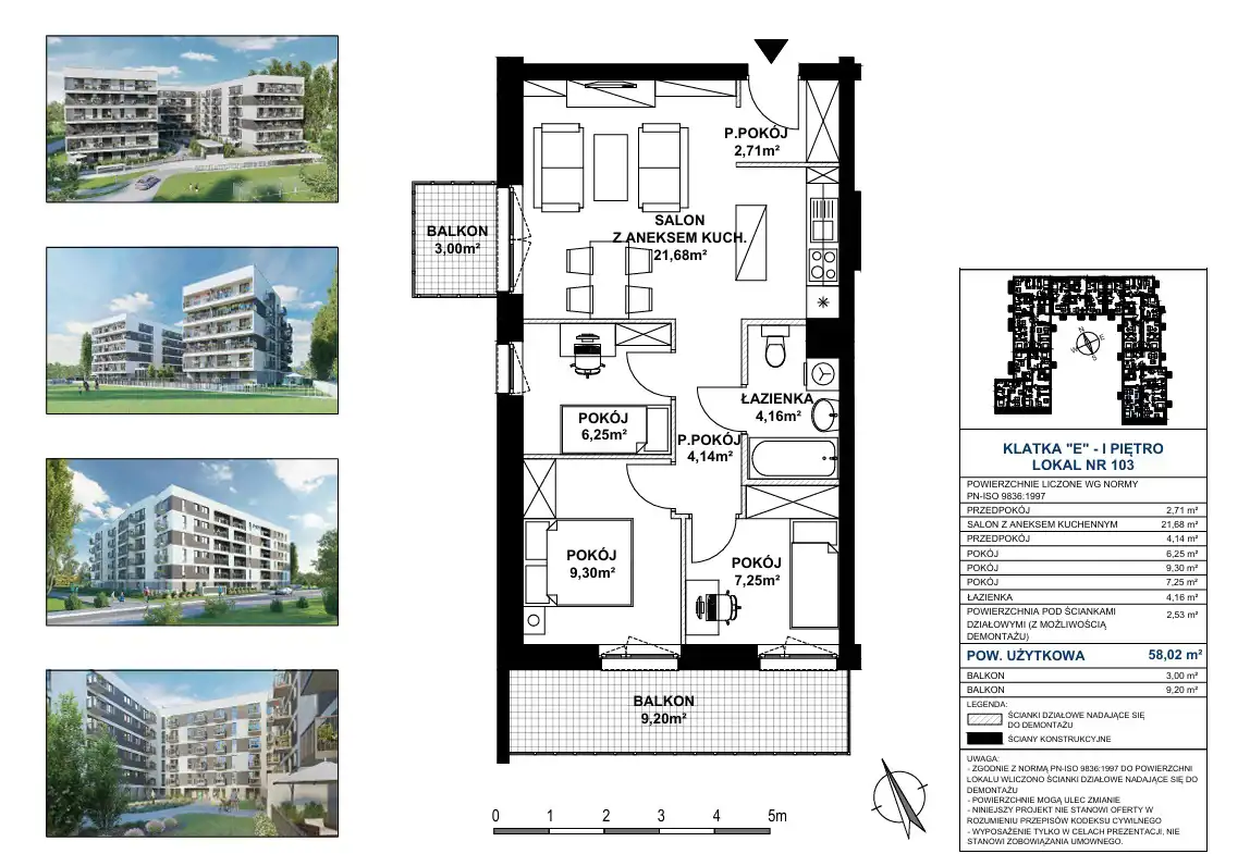 - Charakterystyka mieszkania 58.02 m2, 4 pokoje