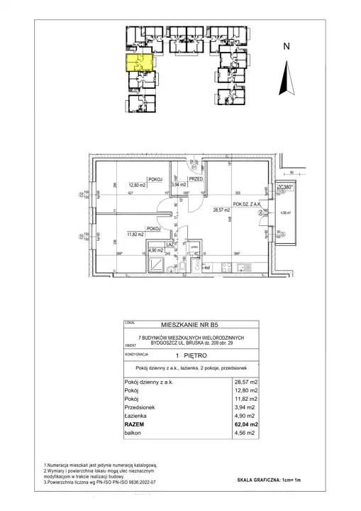 - Charakterystyka mieszkania 62.04 m2, 3 pokoje