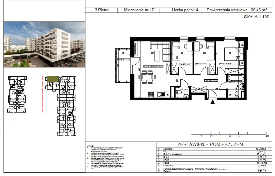- Charakterystyka mieszkania 66.45 m2, 4 pokoje