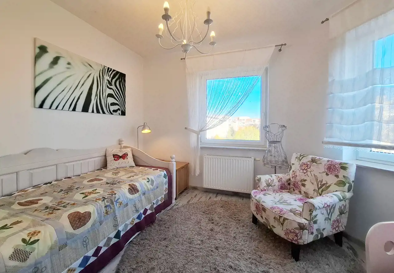 - druga sypialnia z dwoma oknami dzięki którym wpada sporo naturalnego światła, idealna dla najmłodszego pokolenia w rodzinie.