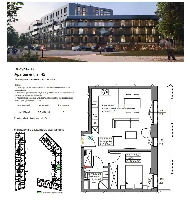 - Charakterystyka mieszkania 41.8 m2, 2 pokoje