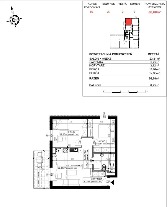 - Charakterystyka mieszkania 56.6 m2, 3 pokoje