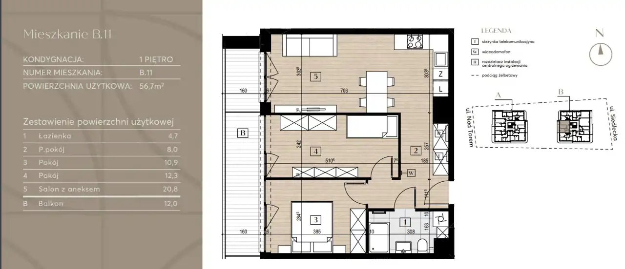 - Charakterystyka mieszkania 56.7 m2, 3 pokoje