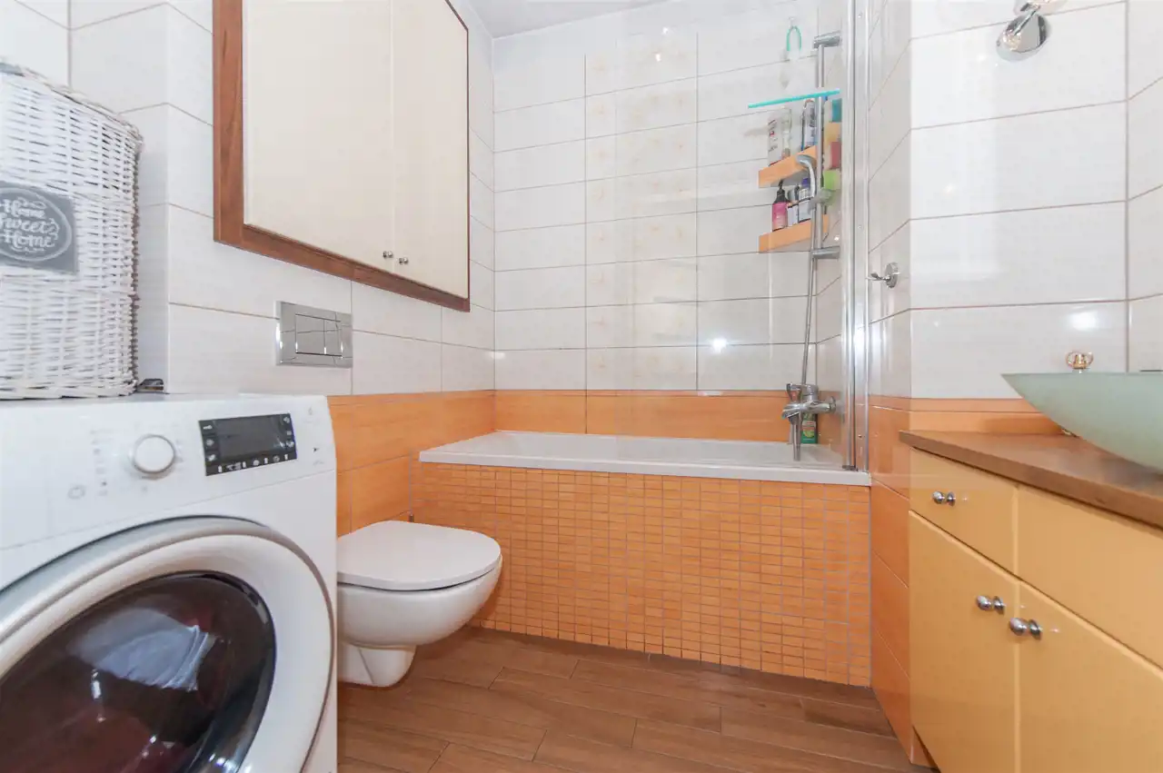-łazienka z pełnym wyposażeniem( bez pralki),