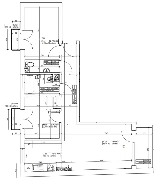 - Charakterystyka mieszkania 57.76 m2, 3 pokoje