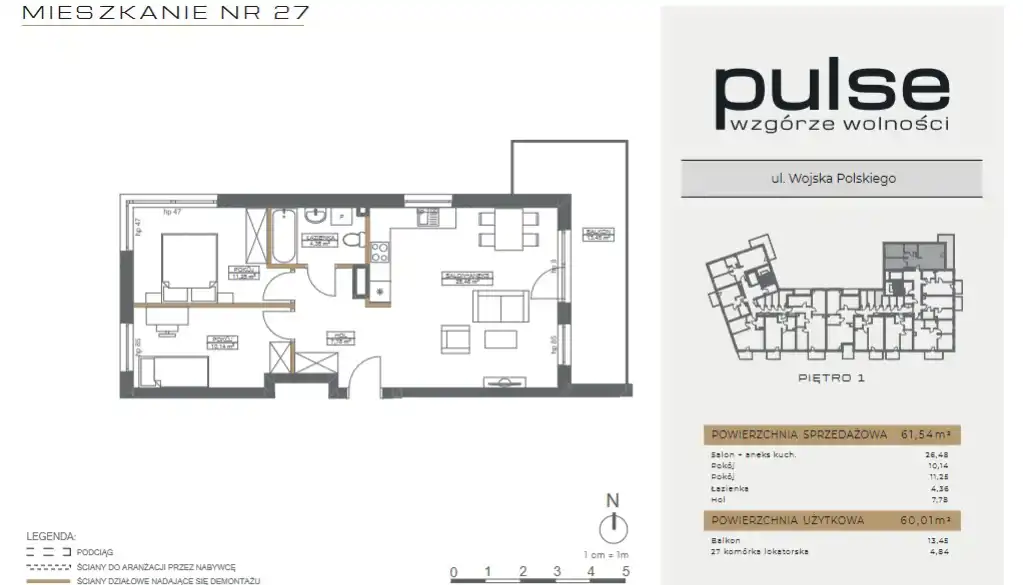 - Charakterystyka mieszkania 61.54 m2, 3 pokoje