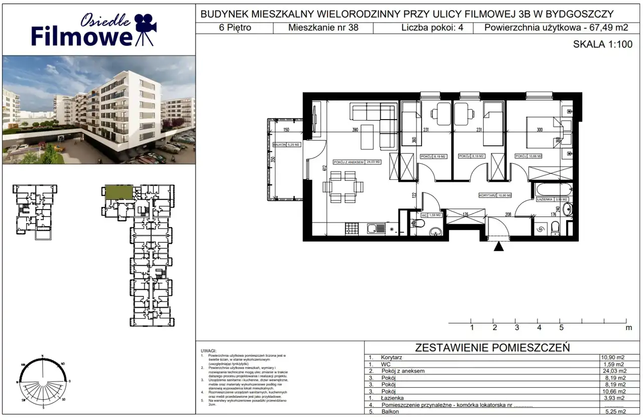 - Charakterystyka mieszkania 67.49 m2, 4 pokoje