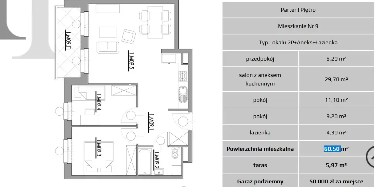 - Charakterystyka mieszkania 60.5 m2, 3 pokoje