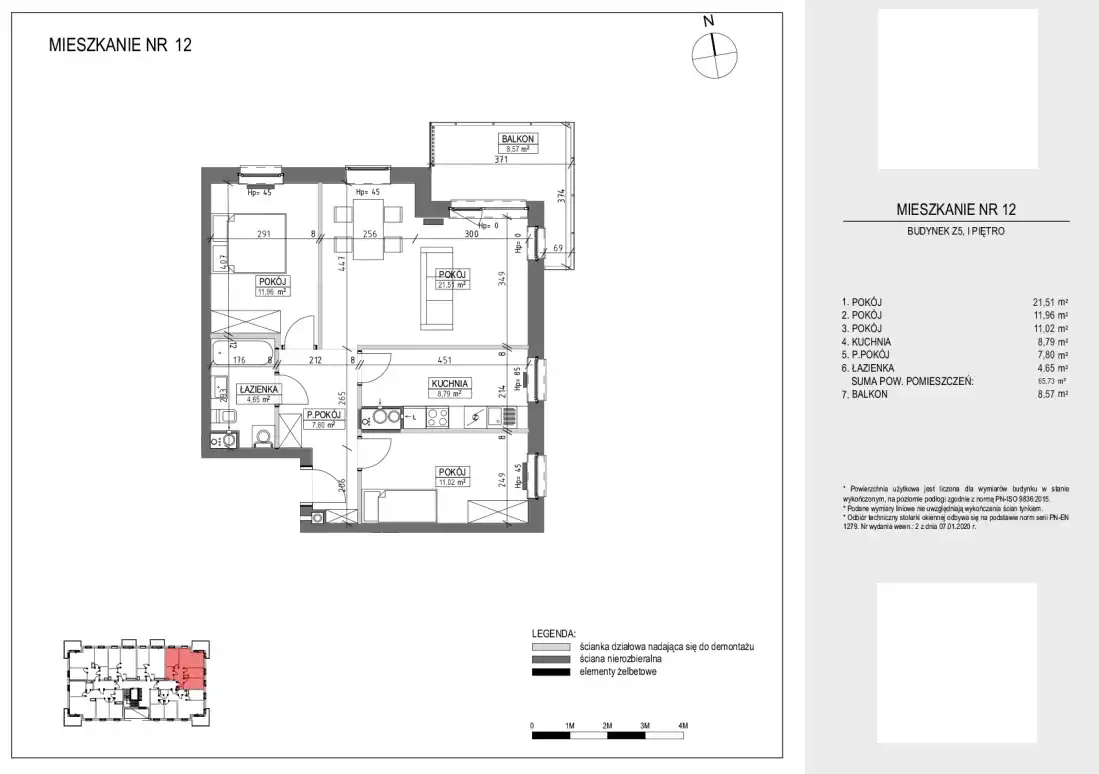 - Charakterystyka mieszkania 65.73 m2, 3 pokoje