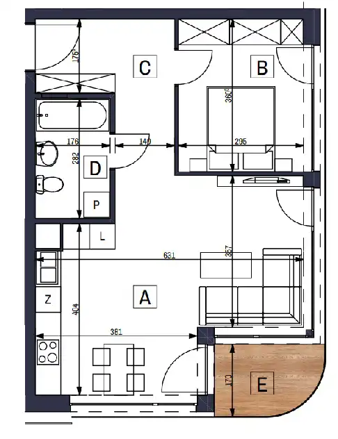 - Charakterystyka mieszkania 55.2 m2, 2 pokoje
