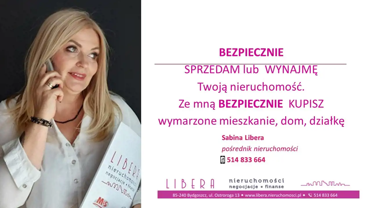 Atrakcyjne oferty nieruchomości, wszelkie formalności a także korzystne kredyty na ich zakup – wszystko w jednym miejscu – LIBERA Nieruchomości. Zapraszamy serdecznie do siedziby naszego biura w Bydgoszczy przy ul. Ostroroga 13.