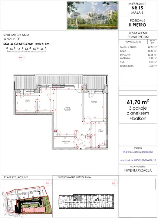 - Charakterystyka mieszkania 61.7 m2, 3 pokoje