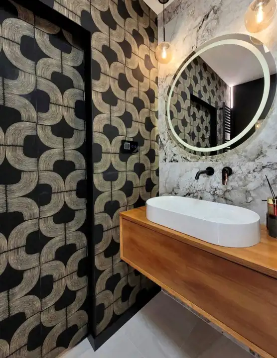 Przestronna łazienka , z elementami złota który dodaje szyku.