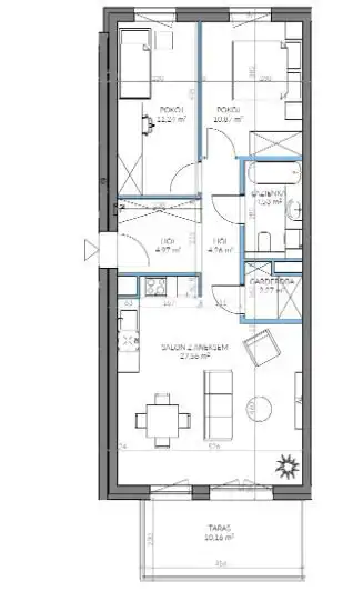 - Charakterystyka mieszkania 65.64 m2, 3 pokoje