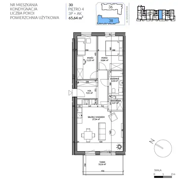 - Charakterystyka mieszkania 65.64 m2, 3 pokoje