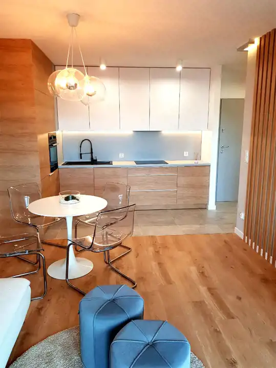 - Kuchnia wysposażona we wszystkie sprzęty AGD, ergonomiczna zabudowa