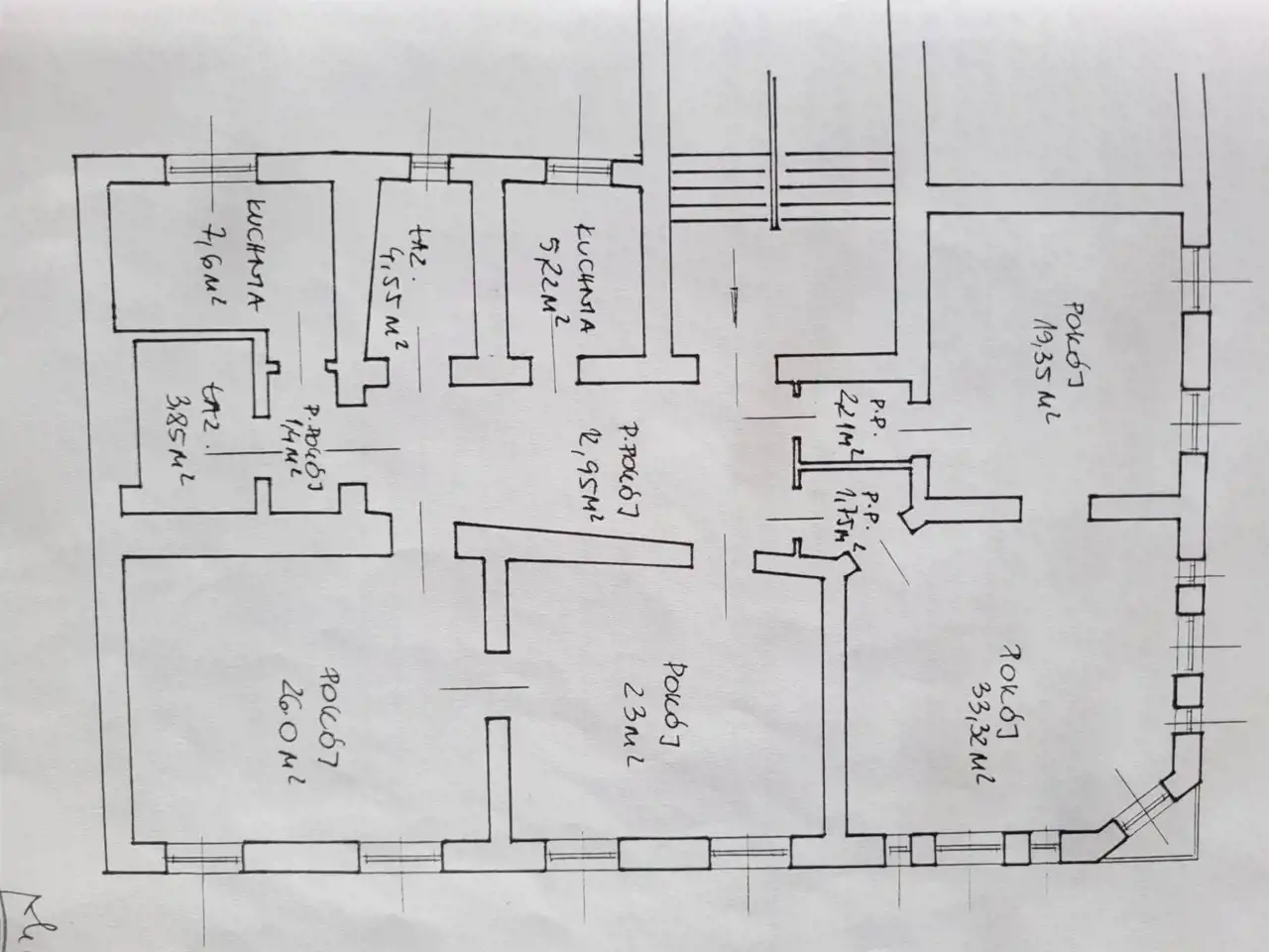 Obecnie jest 5 pokoi, dwie kuchnie i dwie łazienki.