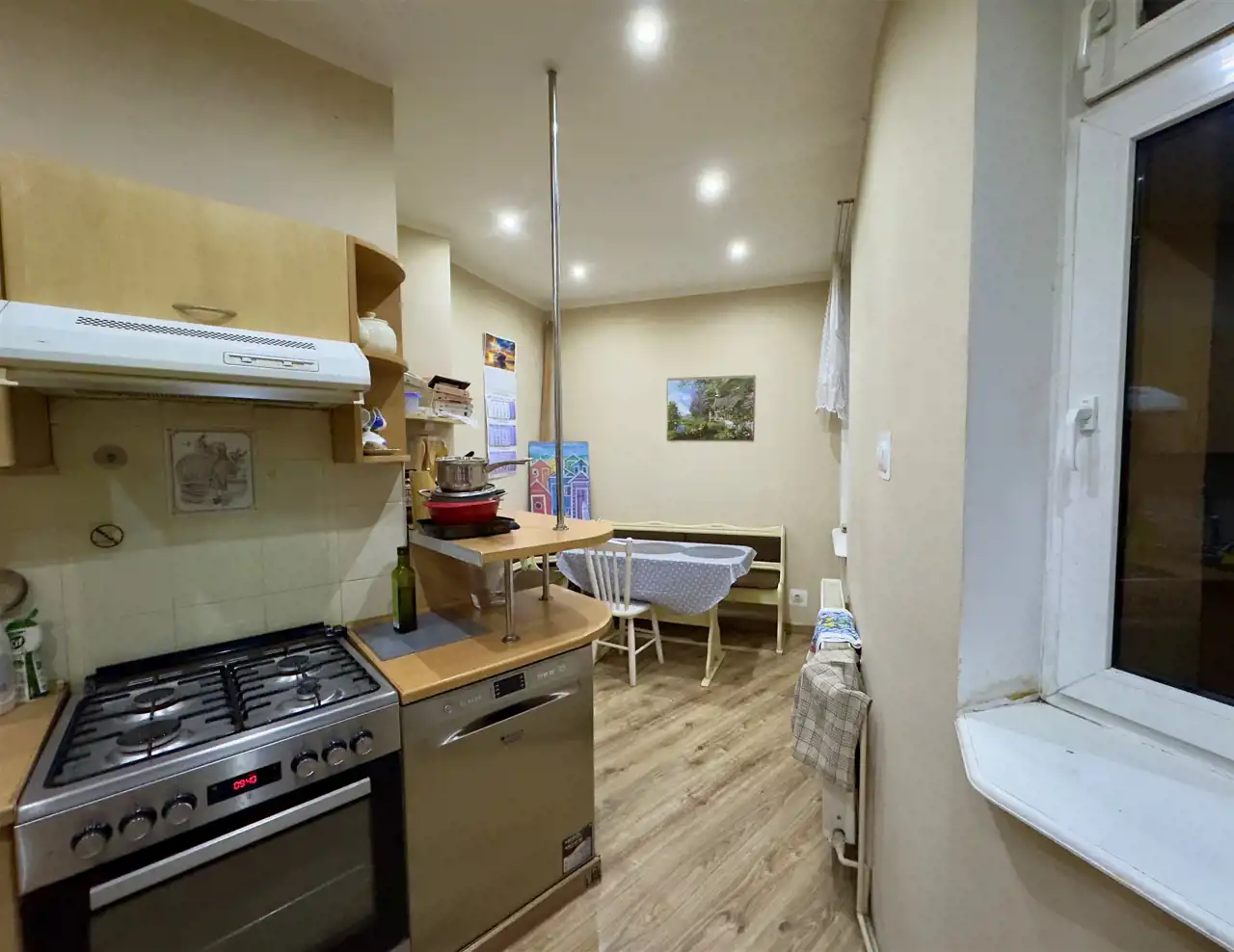 - Pokoje z obniżonym sufitem, ściany regips, na podłogach panele z zachowaną drewnianą podłogą, w dobrym stanie pod panelami.