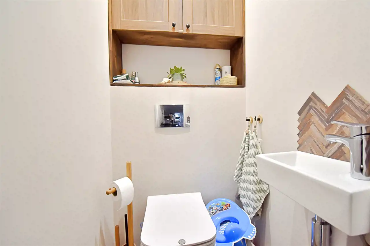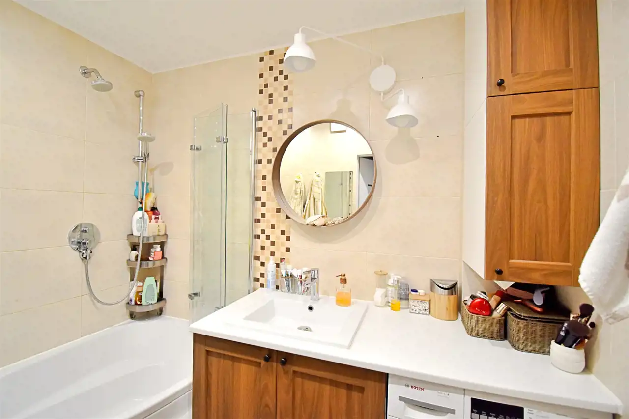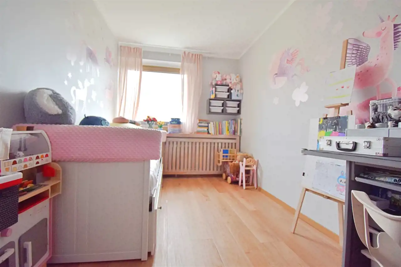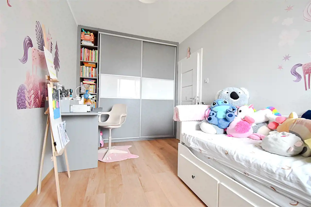 Funkcjonalnie urządzone wnętrze. W mieszkaniu w 2022 r. położone były nowe gładzie w pokojach, przedpokoju i wc oraz panele winylowe wysokiej jakości, w salonie wcześniej położony bielony parkiet dębowy. W bieżącym roku wymieniono okna na wysokiej klasy okna trzyszybowe VEKA - od zewnątrz białe, wewnątrz jasny dąb. Wszystkie pokoje i kuchnia są jasne i przestronne. Atutem jest duży przedpokój z szafą we wnęce oraz garderoba z funkcjonalną zabudową firmy Komandor. W pokojach obecnie zajmowanych przez dzieci szafy w zabudowie marki Komandor.