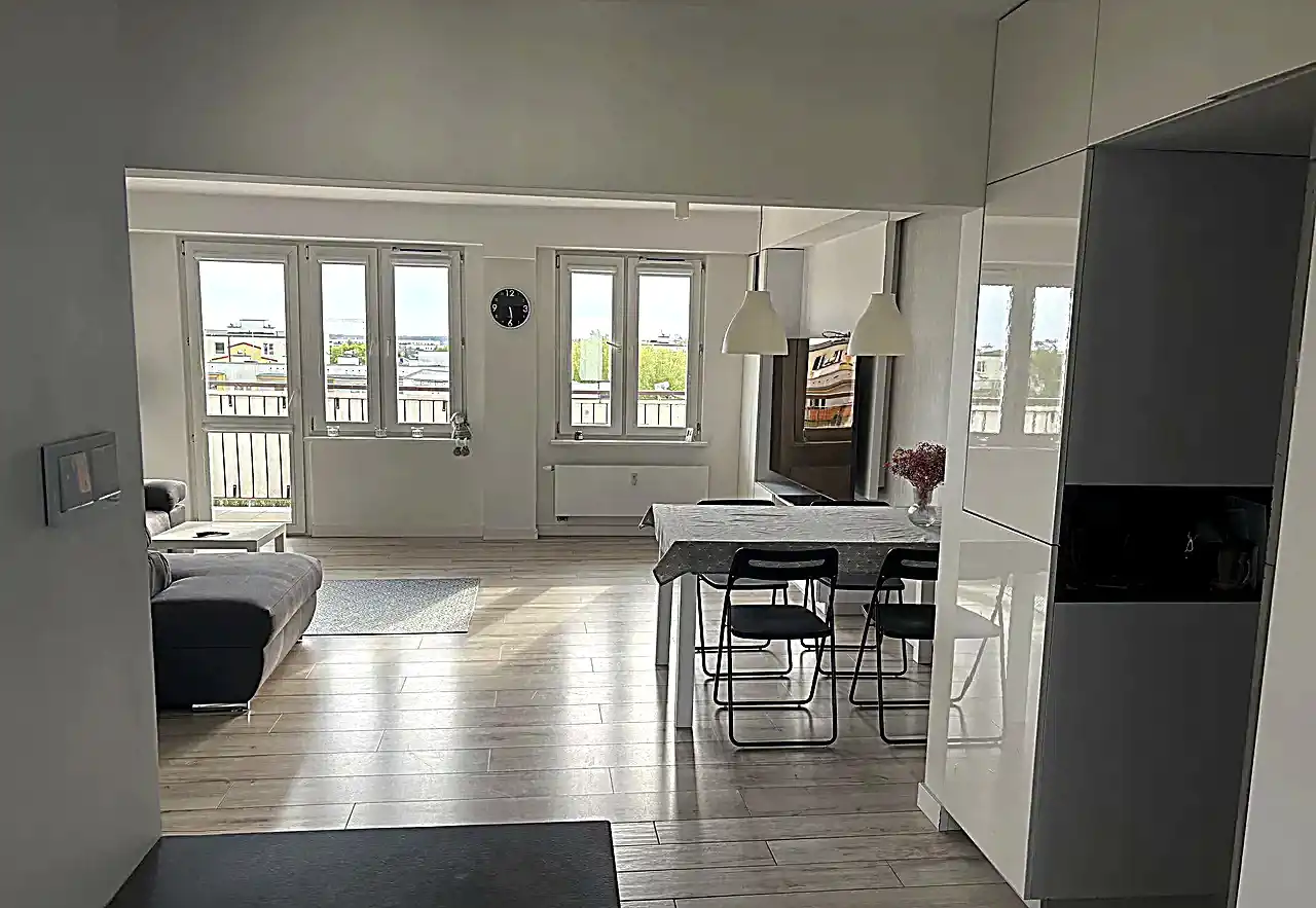 Wnętrze jest zadbane i utrzymane w nowoczesnym, neutralnym stylu, dzięki czemu nowi właściciele mogą wprowadzić się bez dodatkowych nakładów finansowych.