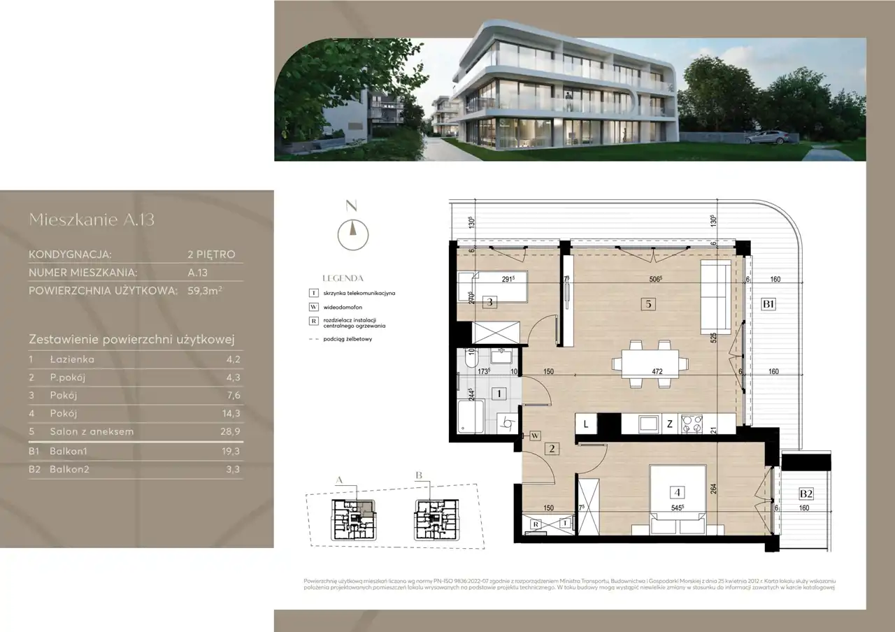 - Charakterystyka mieszkania 59.3 m2, 3 pokoje