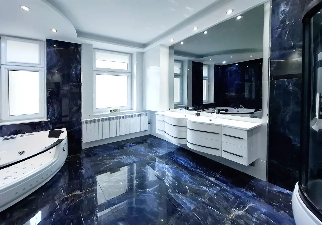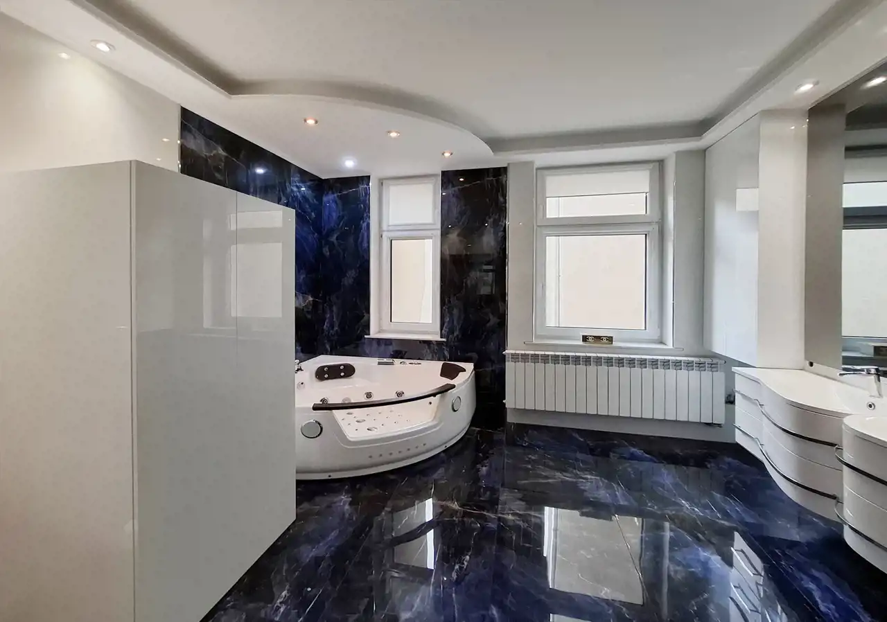 Nieruchomość zachwyca eleganckim wykończeniem w stylu glamour, który łączy nowoczesność z nutą luksusu.