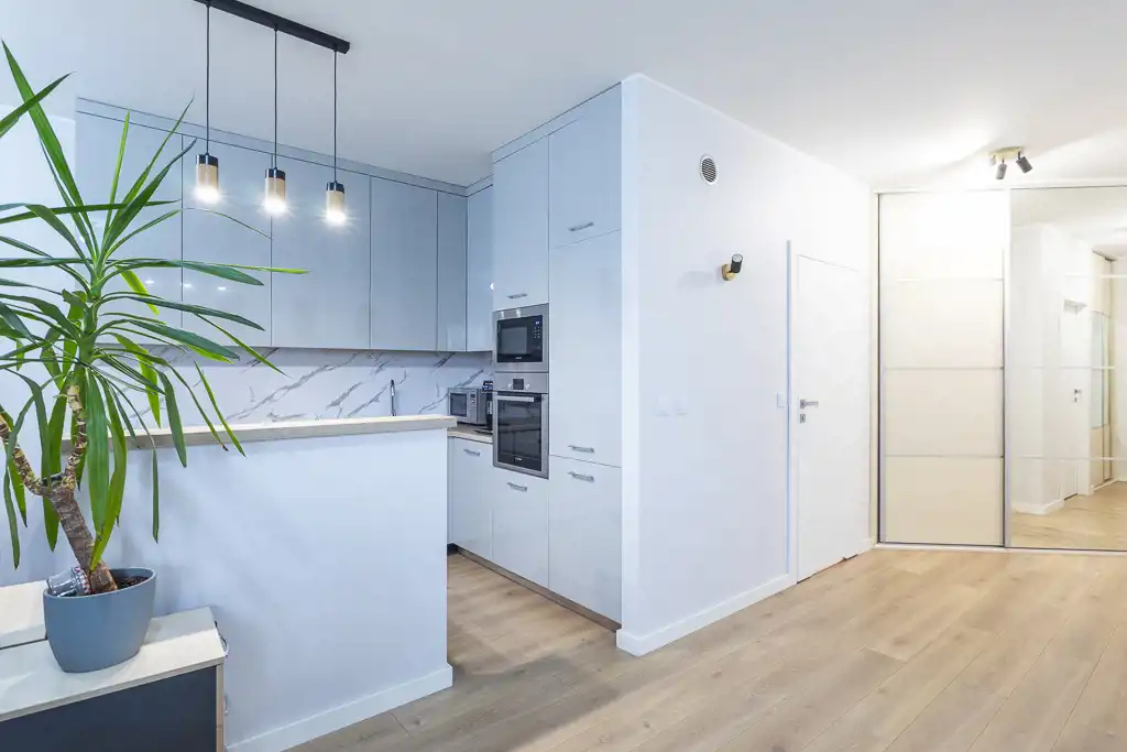 Mieszkanie po generalnym remoncie – wszystko zostało wykonane z myślą o komforcie: nowe podłogi, gładzie na ścianach, stolarka drzwiowa, nowocześnie zaaranżowana łazienka i kuchnia.