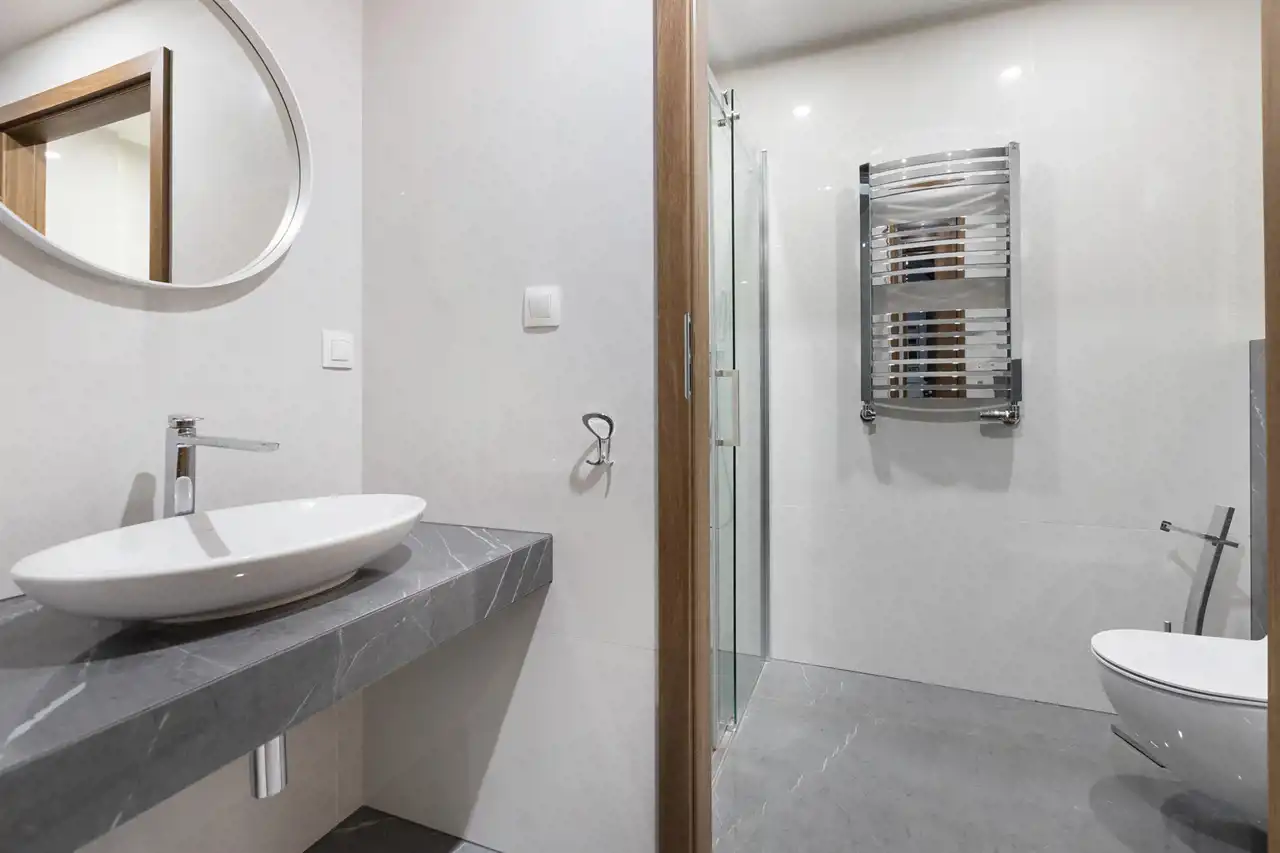 WYSOKI STANDARD WYKOŃCZENIA: Podłogi – włoskie płytki; Ściany - gładź gipsowa, glazura;