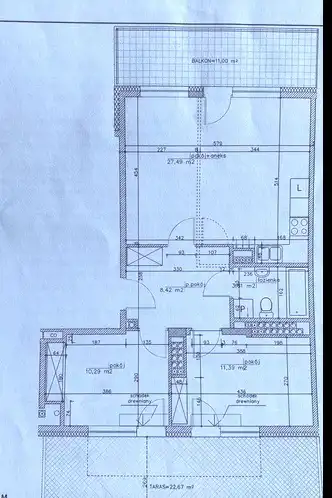 Niewątpliwym atutem nieruchomości jest duży taras o powierzchni 23 m2 oraz 11 m2 balkon.