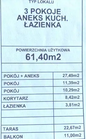 - Charakterystyka mieszkania 61.4 m2, 3 pokoje