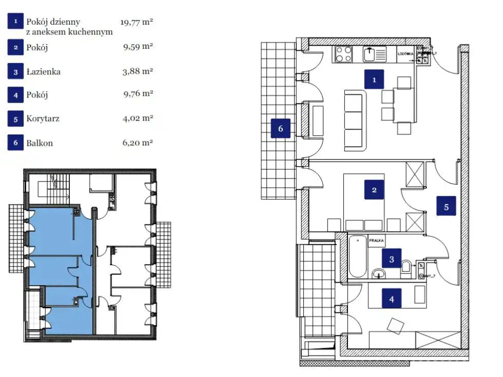 - Charakterystyka mieszkania 47.02 m2, 3 pokoje