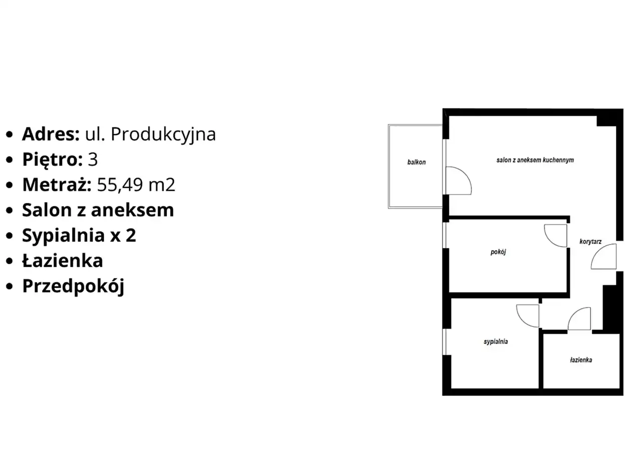 - Charakterystyka mieszkania 55.49 m2, 3 pokoje