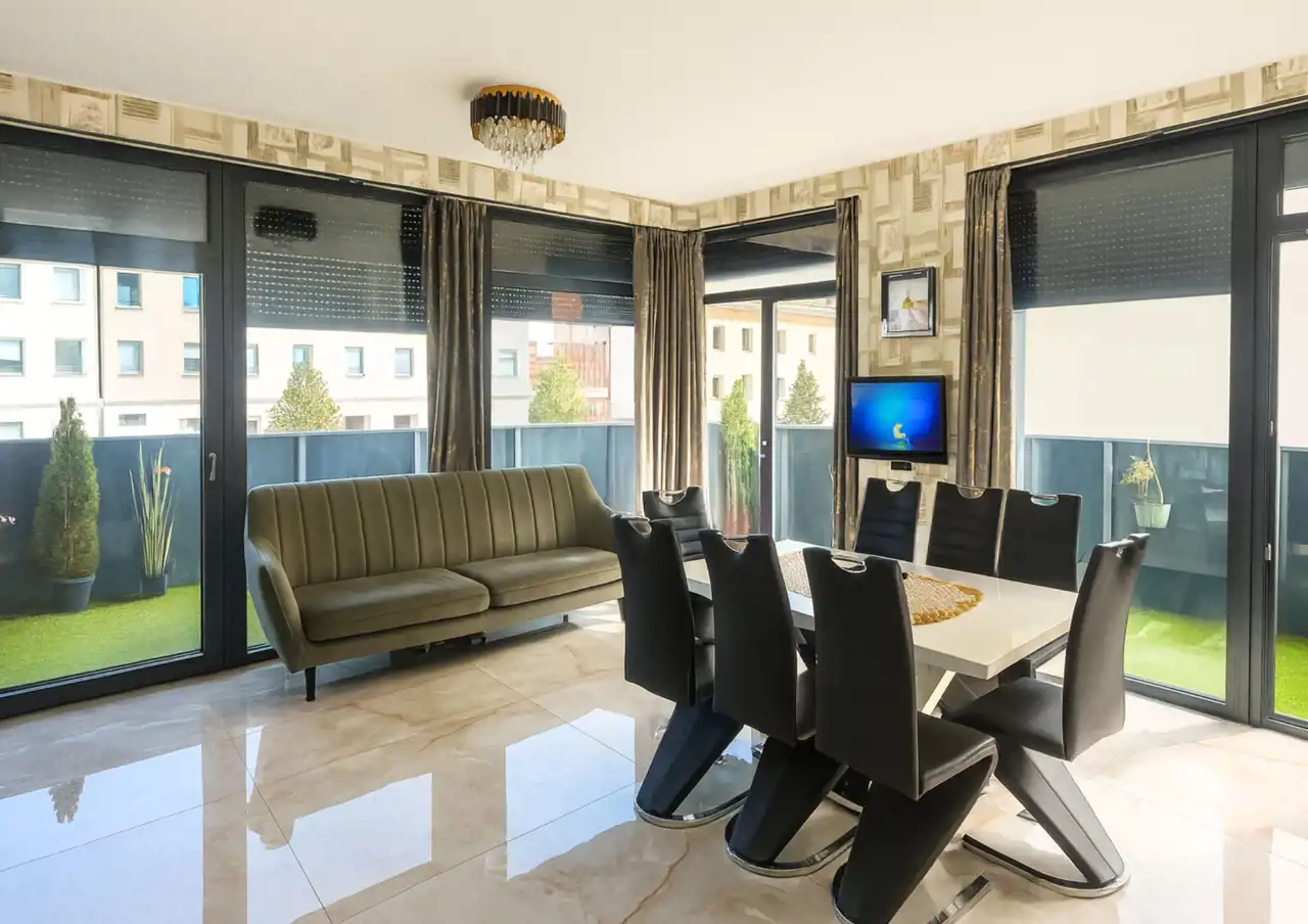 Ogromny balkon 19,5 m² – idealny do relaksu i spotkań na świeżym powietrzu.