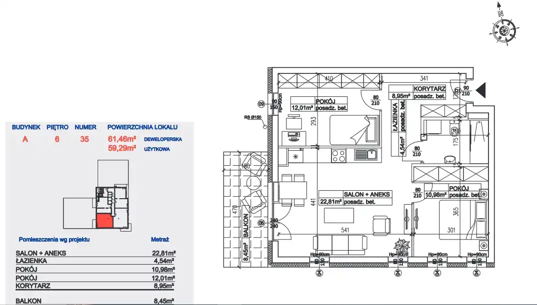 - Rozkład mieszkania 6p piętro