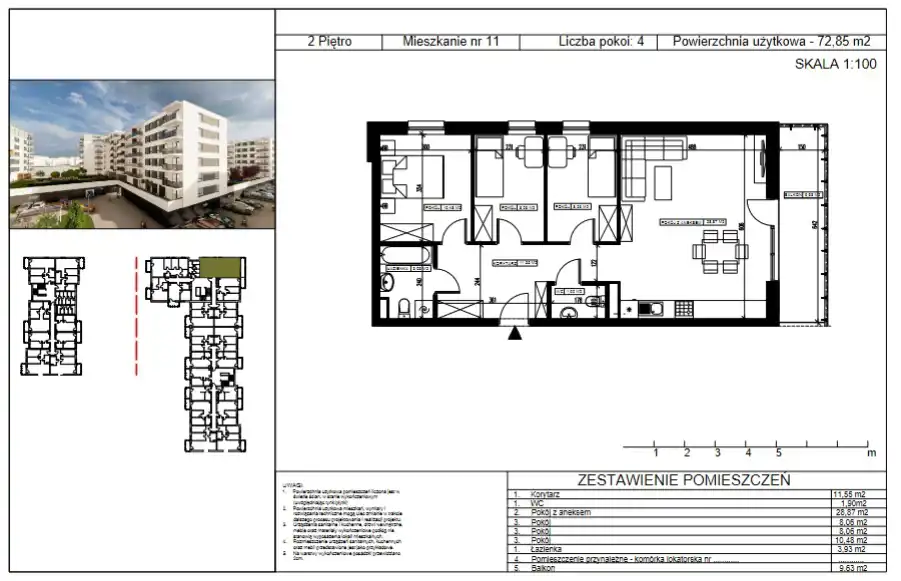- Charakterystyka mieszkania 72.85 m2, 4 pokoje