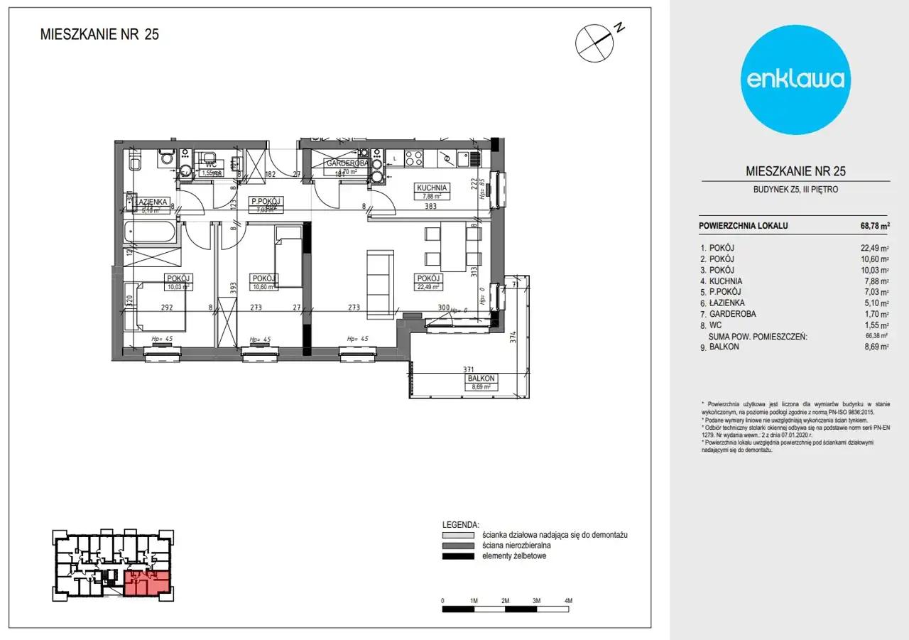 - Charakterystyka mieszkania 67.73 m2, 3 pokoje
