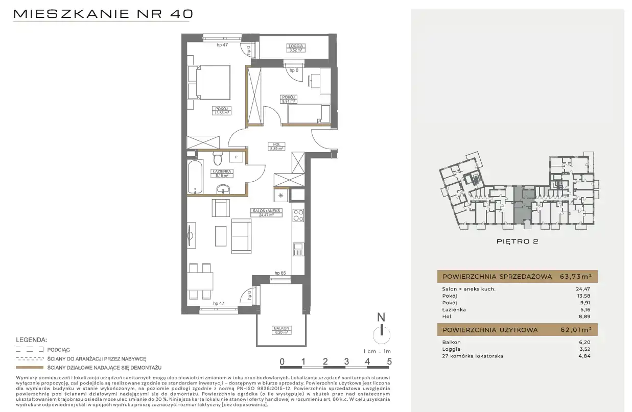 - Charakterystyka mieszkania 63.73 m2, 3 pokoje