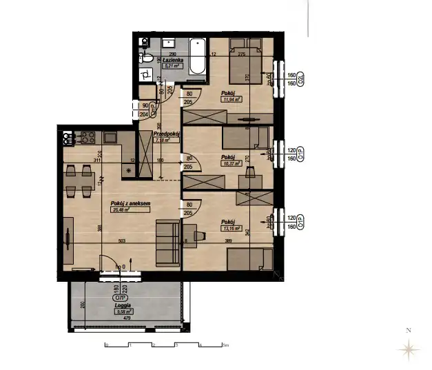 - Charakterystyka mieszkania 73.34 m2, 4 pokoje