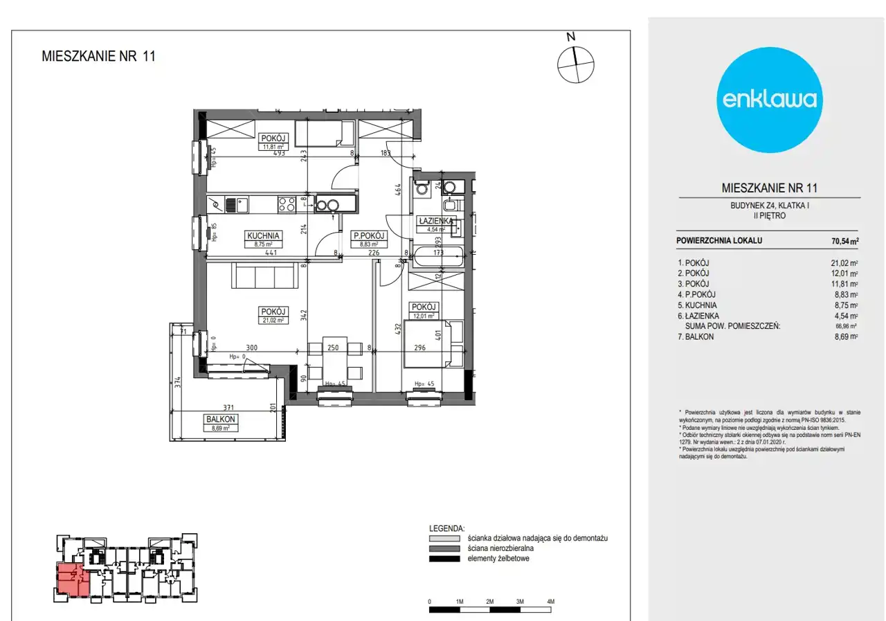 - Charakterystyka mieszkania 68.59 m2, 3 pokoje