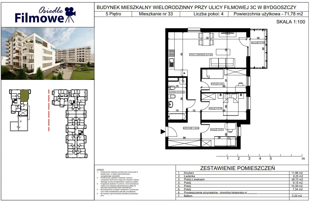 - Charakterystyka mieszkania 71.78 m2, 4 pokoje